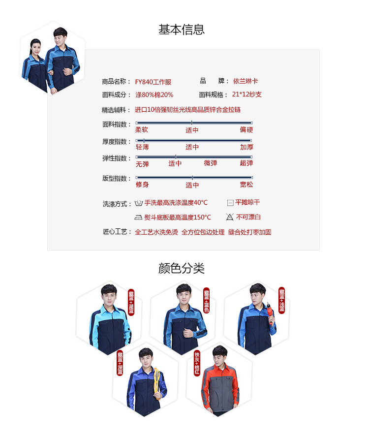 相关新款爆款涤棉撞色工作服FY840推荐