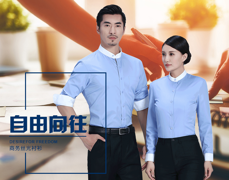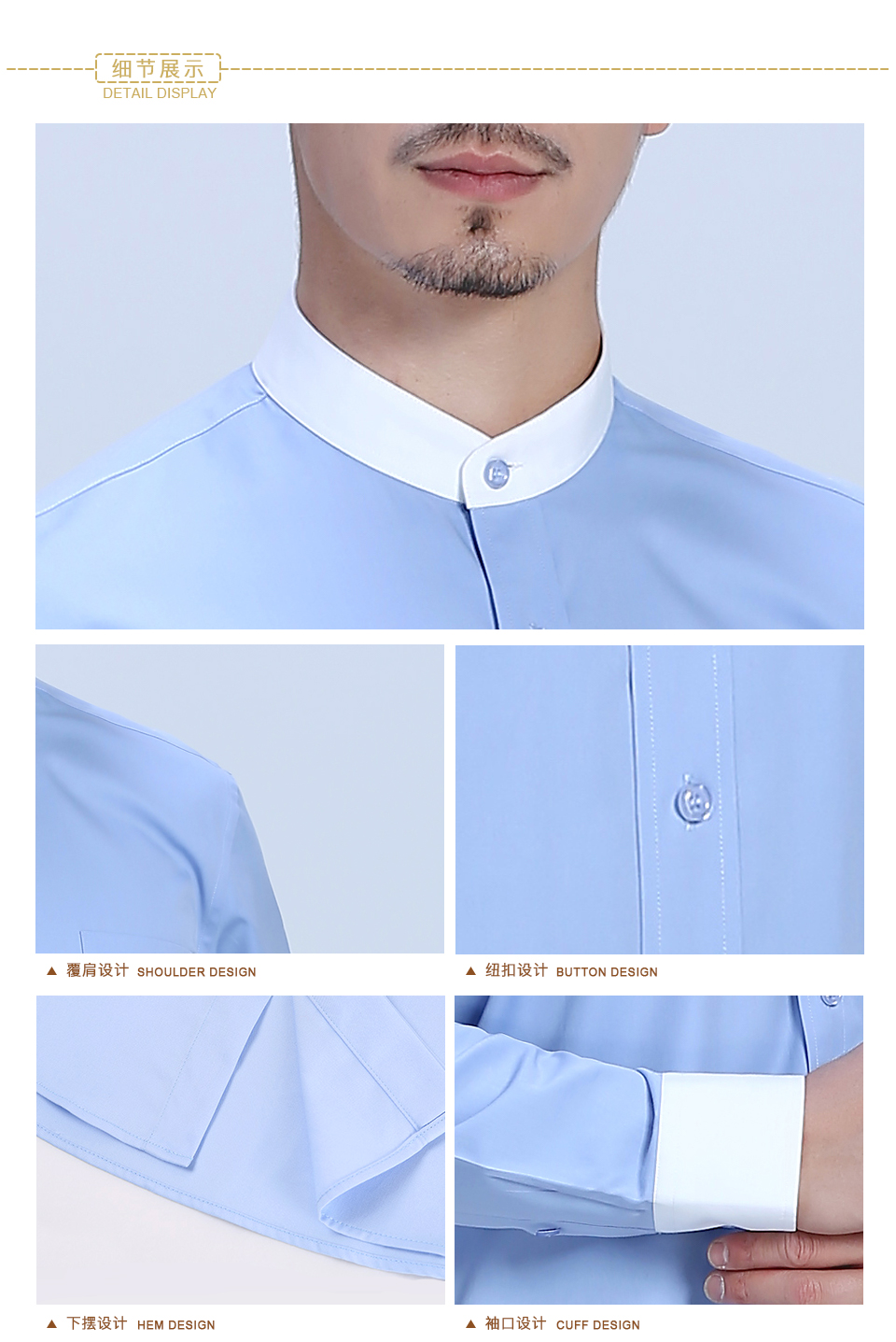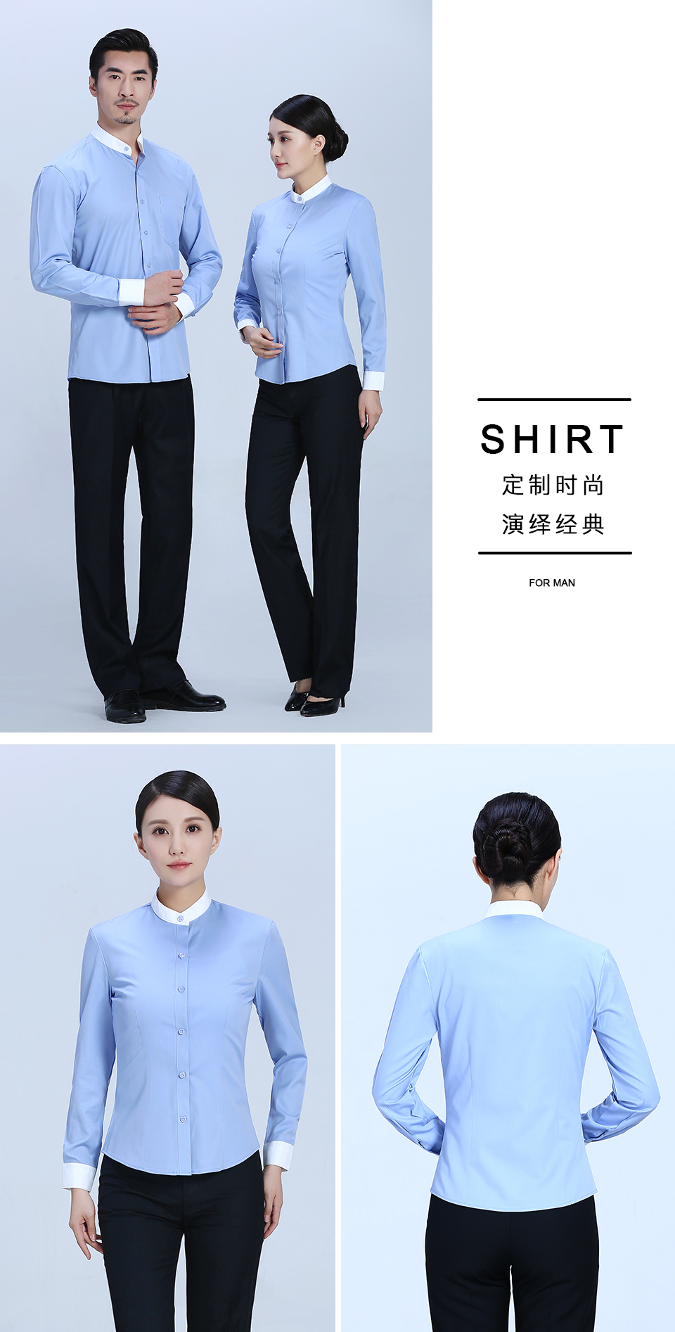 相关全棉舒适立领蓝色撞色职业衬衫ZL029推荐
