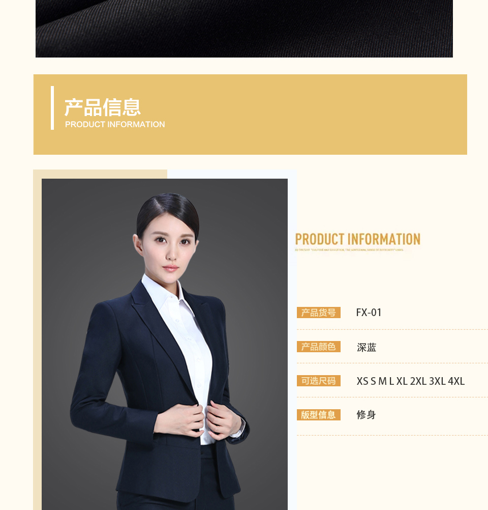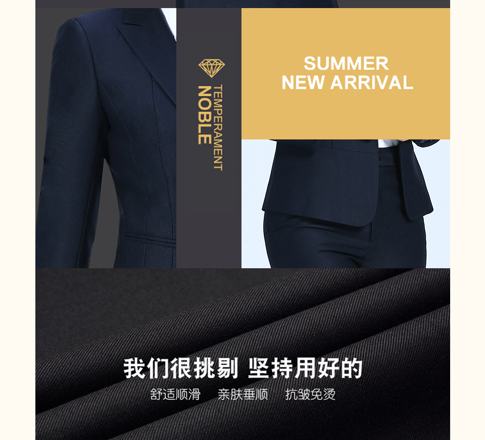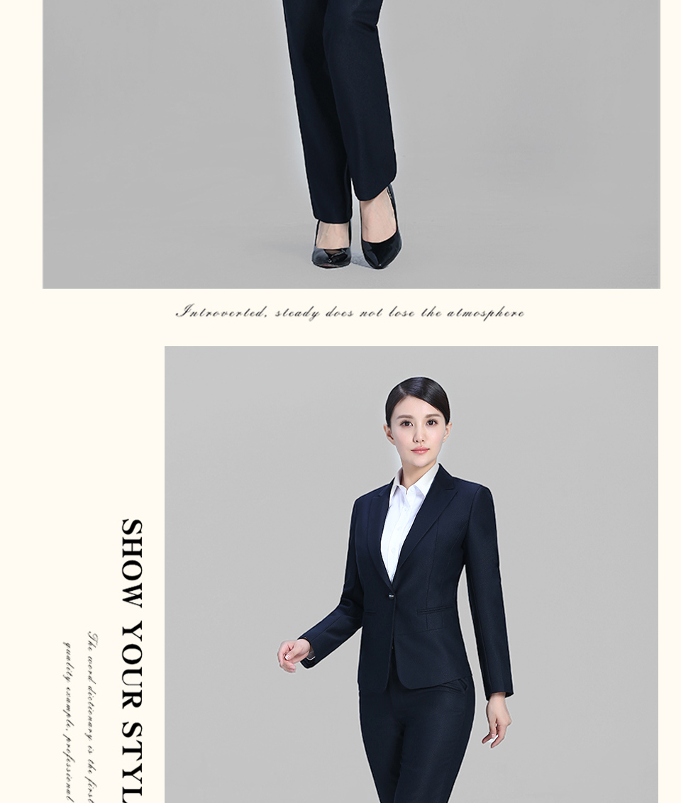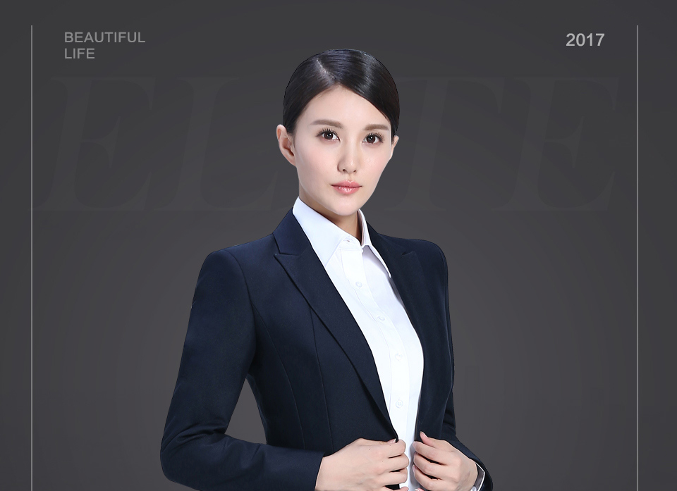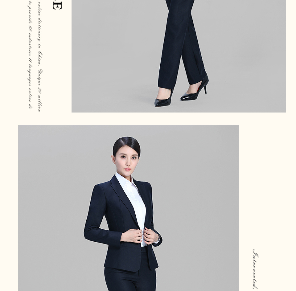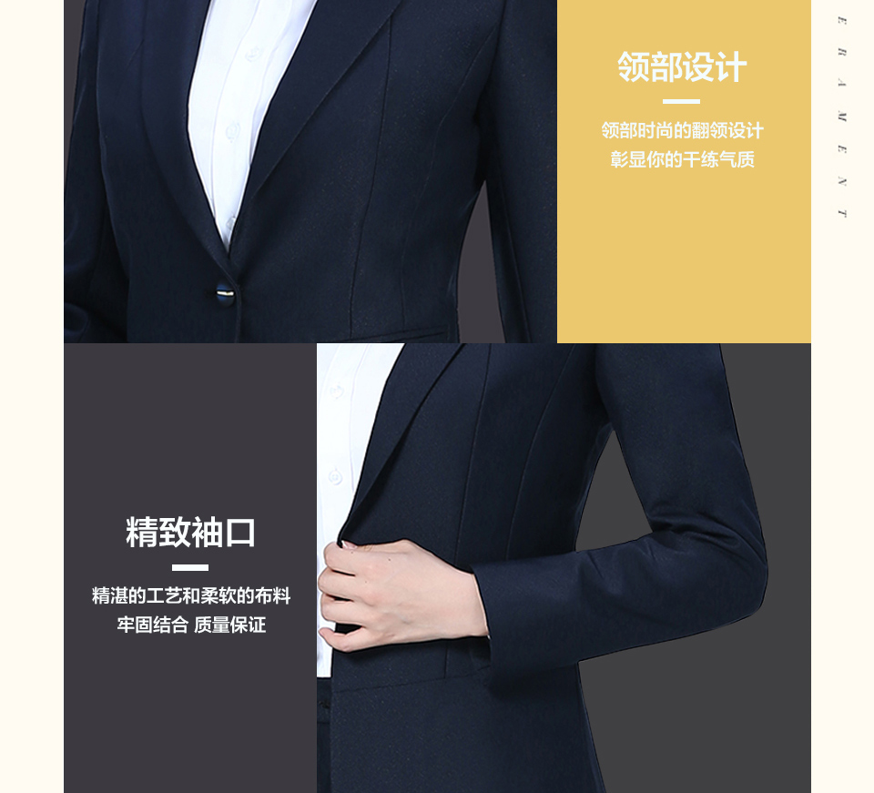 相关戗驳领藏青色分割线黑色职业套装FX09推荐