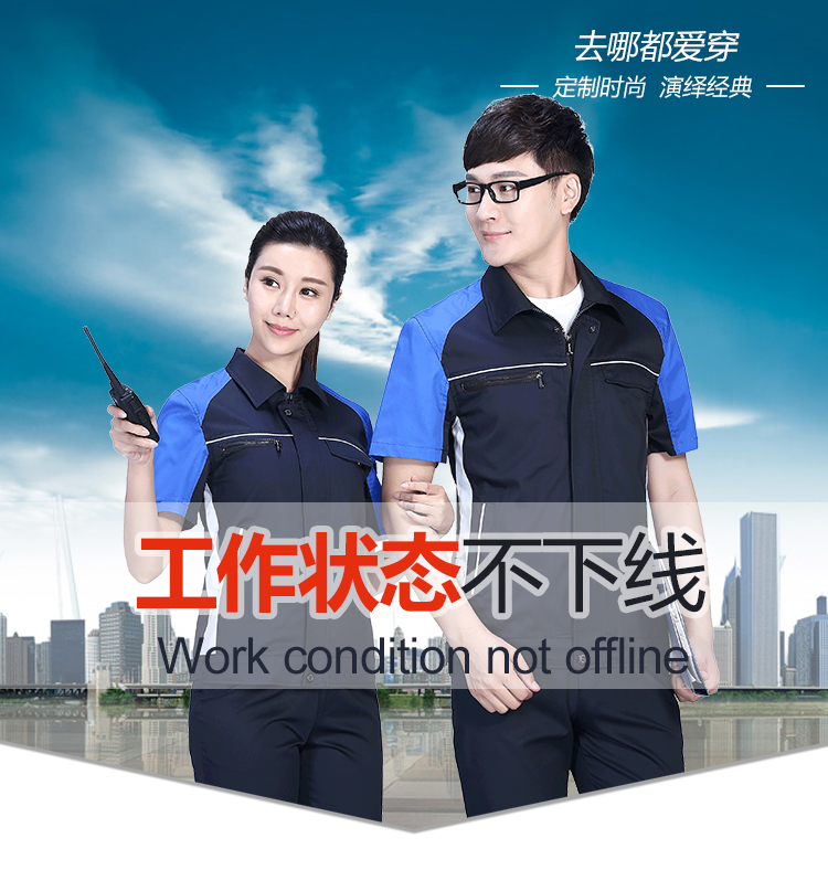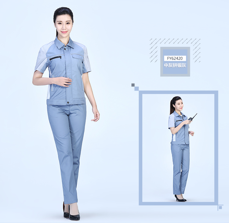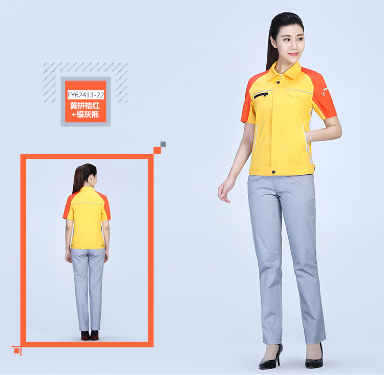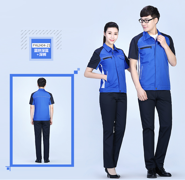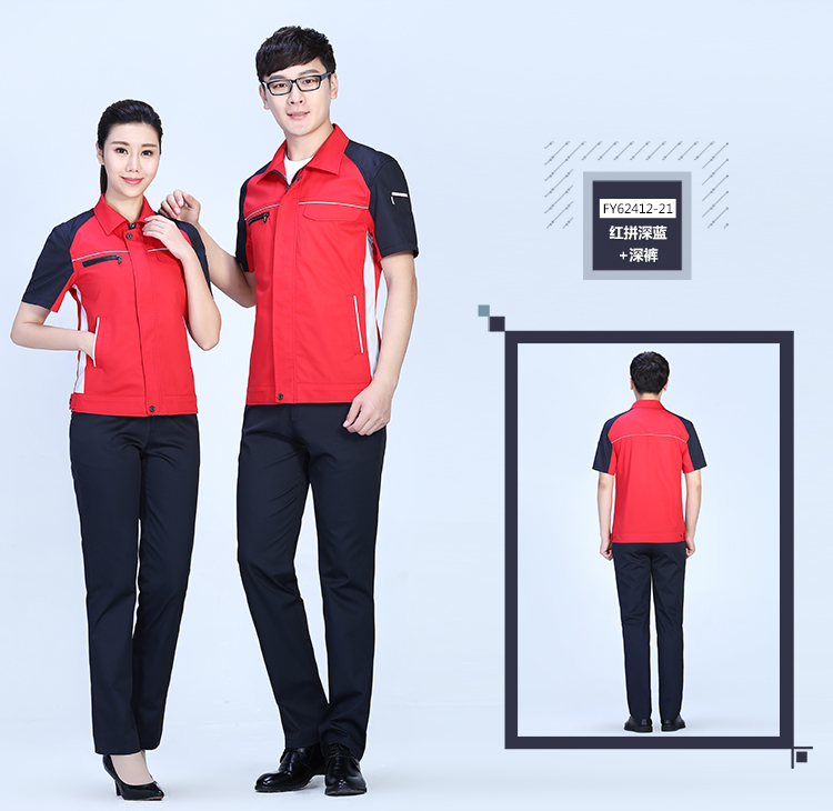 相关涤棉撞色拼接涤棉细斜短袖工作服FY624推荐