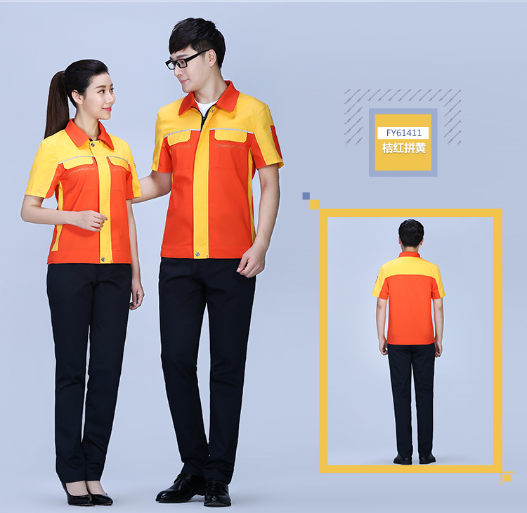 相关拼接撞色夏季涤棉细斜短袖工作服FY614推荐