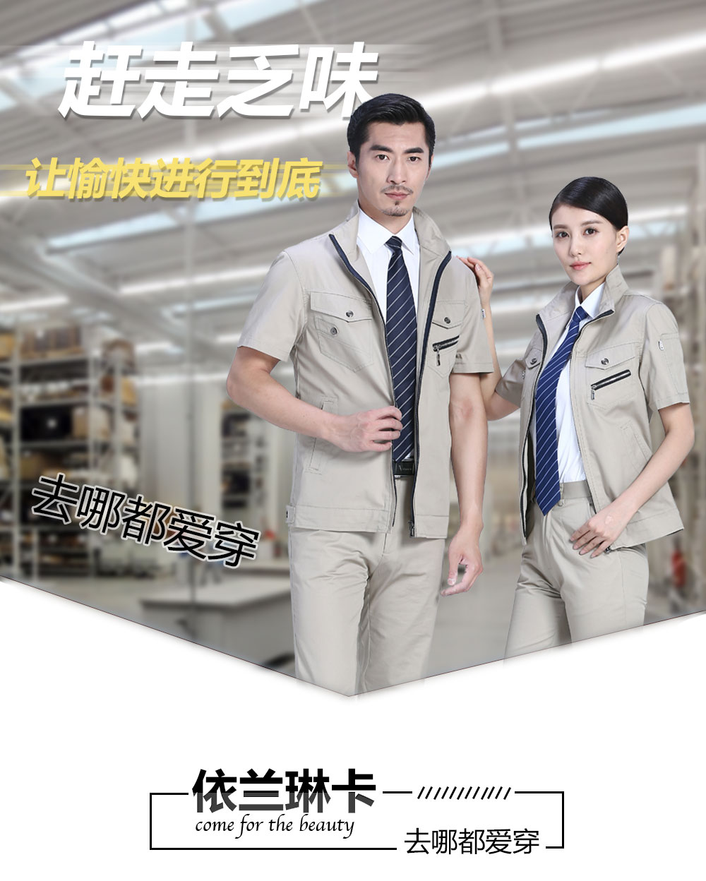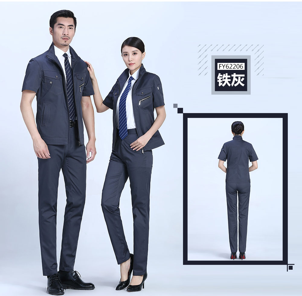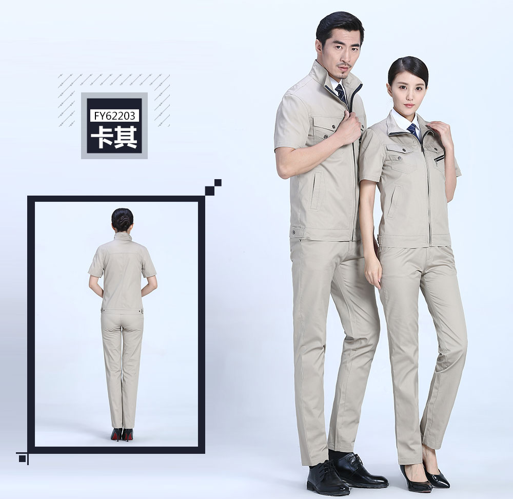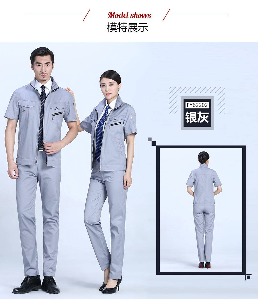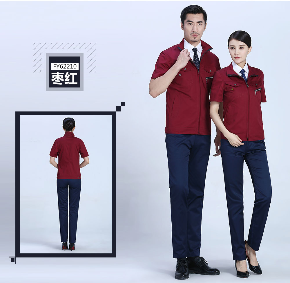 相关高领拉链时尚涤棉细斜短袖工作服FY622推荐